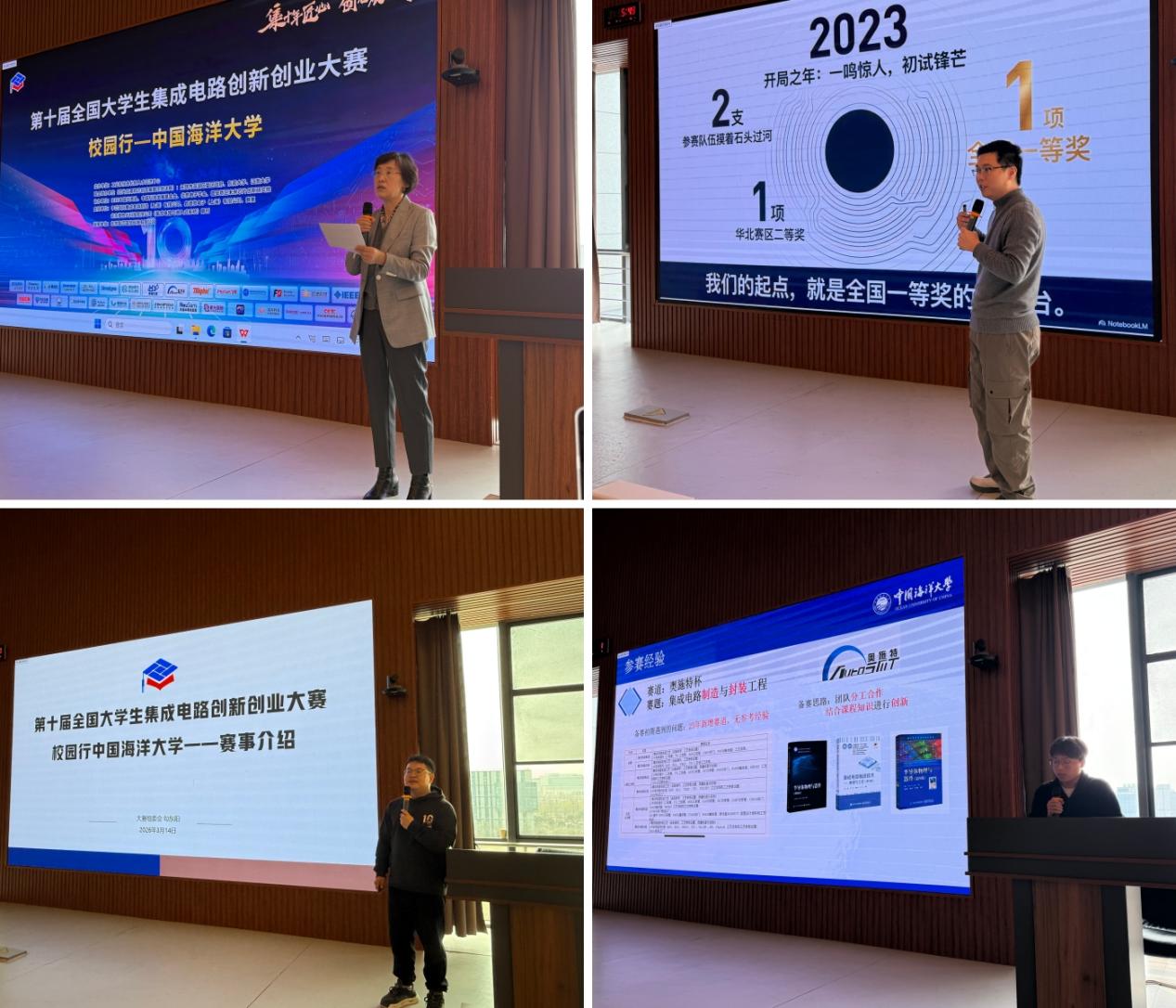 3月14日,第十届全国大学生集成电路创新创业大赛(以下简称“集创赛”)校园行活动在中国海洋大学西海岸校区顺利举办。本次活动由工业和信息化部人才交流中心主办、信息科学与工程学部电子工程学院承办。