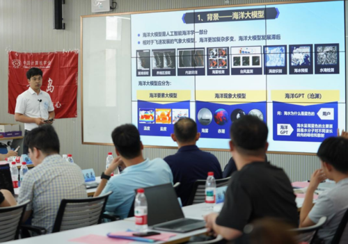 本次研讨会邀请了南京信息工程大学张荣华教授、中国海洋大学聂婕教授、浙江大学张宁豫副教授/特聘研究员(“OceanGPT(沧渊)海洋大模型”主要参与人)和中科院海洋所杨楠助理研究员(“琅琊大模型”总技术负责人)做引导发言,中科院自动化所赵恺副研究员、青岛励图高科信息技术有限公司张俊虎博士(大模型研发负责人)、中国海洋大学崔英哲博士(“问海大模型”主要参与人)担任思辨嘉宾。