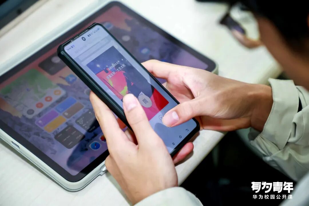 答疑环节结束后,本次活动逐步进入尾声。随后现场先后组织开展惊喜抽奖及Harmony OS专项体验活动。活动现场专门配备多款搭载鸿蒙系统的终端设备,供师生实操体验,让同学们在驻足探索、实操实践中沉浸式感受鸿蒙系统的技术优势,进一步深化对科技发展广阔前景与无限可能的认知。
