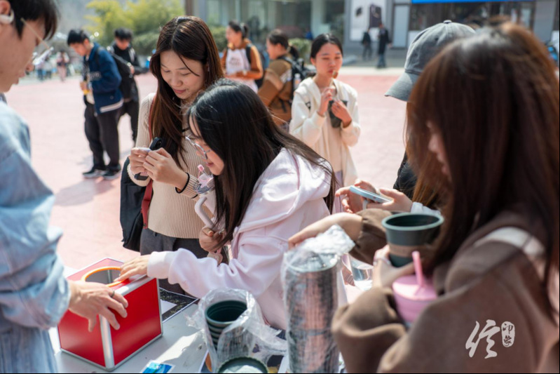 植物盲盒作为活动的核心环节,工作人员为同学们准备了满天星、薄荷、薰衣草等多种神秘种子。同学们有序排队领取属于自己的神秘种子,从播种开始静待生命破土而出,在忙碌的学业之余感受自然的疗愈力量。活动现场气氛热烈,春日的暖阳与同学们的欢声笑语交织成一道别样的风景线。