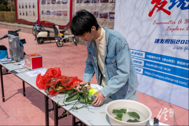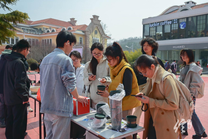 3月26日中午,由中国海洋大学信息科学与工程学部团委主办、信印象传媒中心承办的“种一方清香,享悠然时光”植物盲盒与非遗拓印活动在崂山校区二餐门口和西海岸校区听海餐厅门口同步开展,春日的微风拂过活动现场,色彩缤纷的展台前很快聚满了人群,同学们对这场有趣的春日活动表现出极大的热情。