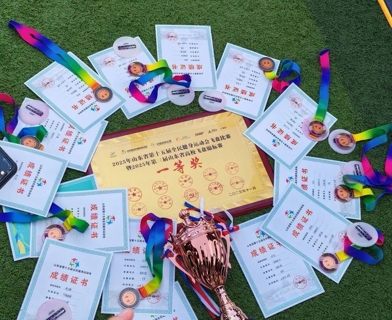 此次获得的季军成绩,为OCEANFLY飞盘队的荣誉史册再添一笔。OCEANFLY飞盘队不仅荣获“2025年山东省第十五届全民健身运动会飞盘比赛暨2025年第三届山东省高校飞盘锦标赛一等奖”,队伍教练更是凭借出色的临场指挥和战术部署,荣膺“最佳教练员”称号。